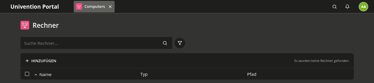Abb. 7.3 Die Listenansicht des Verwaltungsmoduls Computer ohne Einträge.#
