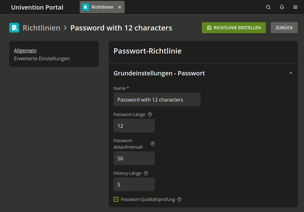 Für andere Passwort-Richtlinientypen, die für die UCS Appliance gelten, siehe Arten von Passwortrichtlinien in Univention Corporate Server - Handbuch für Benutzer und Administratoren [2].