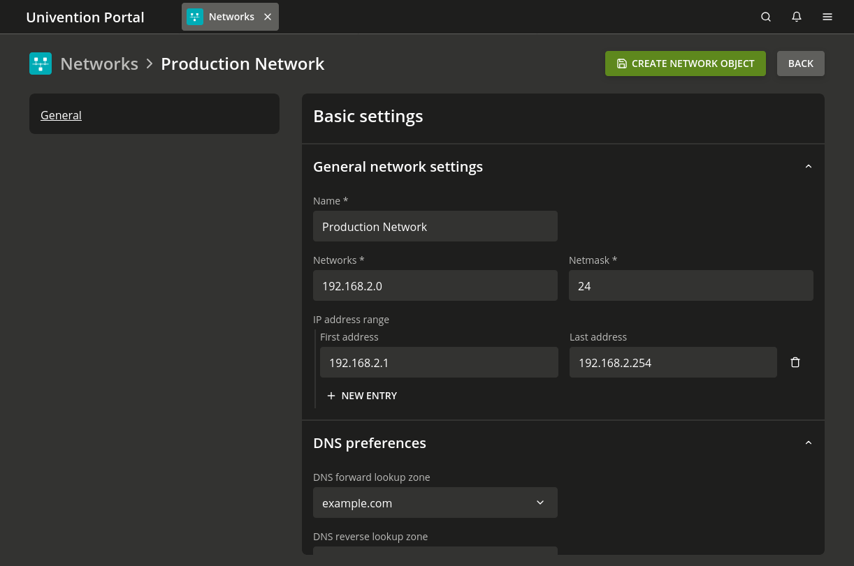 You can manage network objects in the Network management module. For more information about the Management UI, see Univention Management Console modules.